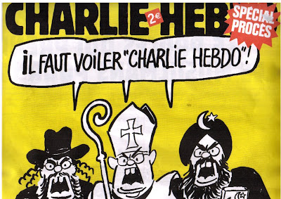 Just in the name of further information, the BBC were reporting on the radio this morning that the edition was also to carry a picture of Muhammed on the cover and the magazine was being renamed to "Sheria (sp) Hebdo".